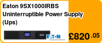 Eaton 9SX UPS. UPS topology: Double-conversion (Online), Output power capacity: 1000 VA, Output power: 900 W. Serial interface type: RS-232. Form factor: Tower, Product colour: Black, Display: LCD. Width: 160 mm, Depth: 387 mm, Height: 252 mm. Output voltage: 120 V