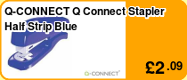 Q-Connect Half Strip Plastic Stapler. Manufactured from ABS with an inner metal chassis for added strength. Accepts No.26/6 and 24/6 staples with a sheet capacity of 20 and a throat depth of 56mm. (for staples see KF27001).