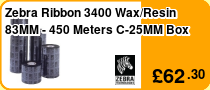Zebra Wax Ribbon 110MMX300M 2300; European Wax 25MM Core Box Of 12