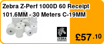 Zebra Z-Perf 1000D 80 Receipt 101.6MM - 24.1 Meters C-19